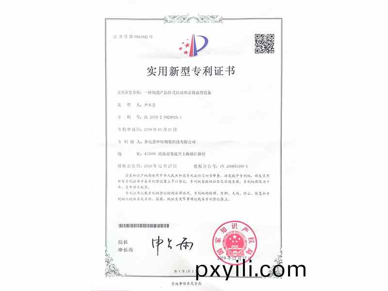 實(shí)用新(xin)型專(zhuan)利證書(shu)